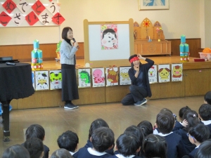 3学期始業式あけましておめでとうございます。新しい年が明け、3学期始業式を行いました。子どもたちは楽しい冬休みのお話をしてくれ、沢山の思い出が出来たようです。始業式では、正月遊びの紹介を行いました。羽根つきや、まりつきを教師が挑戦したり、園長先生が福笑いを行ったり、運転手さんもこまを回してくれて、大盛り上がりでし..